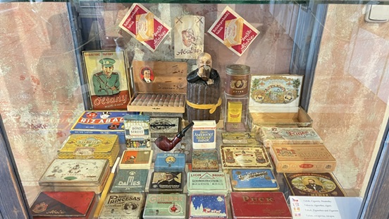 展示エリアでは、19世紀の古いレジスターや秤(スケール)、コーヒー缶、計算機、本や化粧品包装などがずらりと並んでいて、まるで昔の商店に迷い込んだかのような感覚に。懐かしさと新鮮さが同居したディテールに、思わず見入ってしまいました。この博物館は、入場は無料で、寄付箱が設置されているだけ。チェコのレトロデザインがキュートに詰まった博物館。時間を忘れ見入ってしまいました。ビンテージ風のブリキ看板や冷蔵庫用マグネットなどを売る小さな土産ショップも併設されていて、旅の記念にもぴったりです。