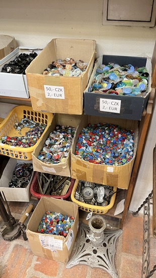 チェススキークロムロフの街には、アンティークショップが点在しています。たまたま入ったアンティークショップに大好きなチェコガラスを偶然発見し興奮!雑多に掘り出してあるガラスボタンの山の中からお宝物を探すように夢中になってました。
