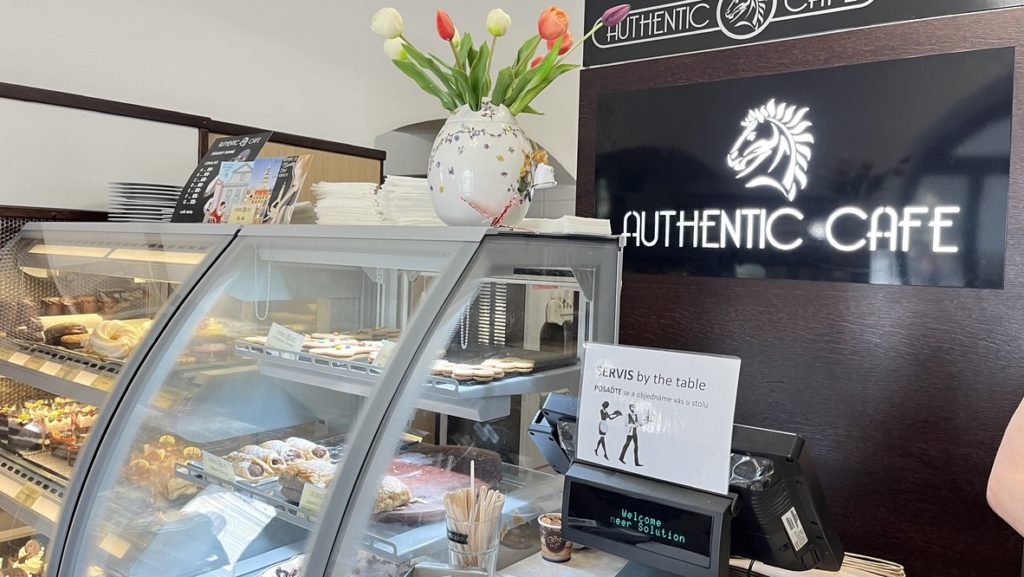スヴォルノスティ広場を歩いていると、ひときわ目を引くアールデコ調の建物に出会いました。そこが Authentic Café です。創業は1991年、地元のご家族によって営まれているという、温かみのある本格カフェ&ベーカリー。