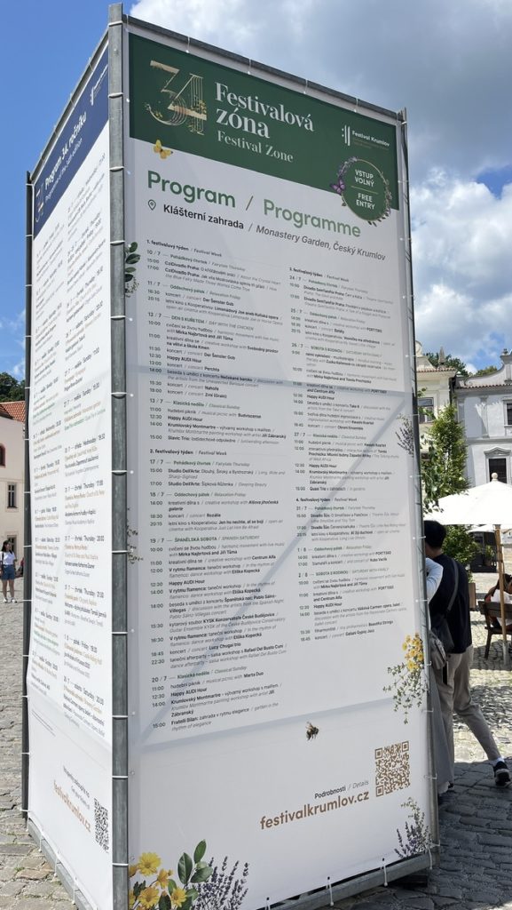 夏に開催される Festival Krumlov では、無料の野外ライブが広場や川沿いで行われます。筆者訪問時は未開催でしたが、音楽好きなら日程を事前チェックして足を運ぶ価値ありです。