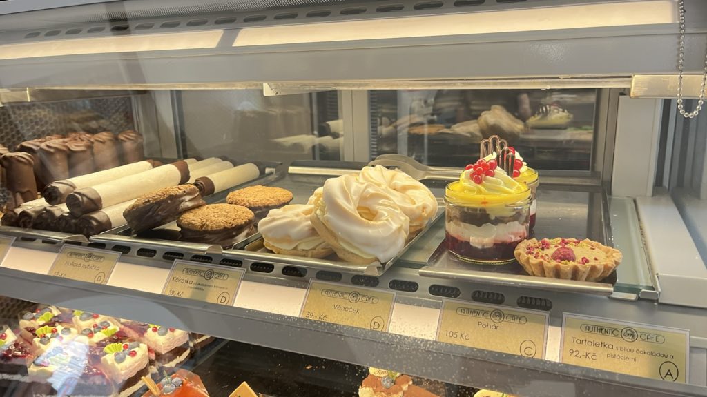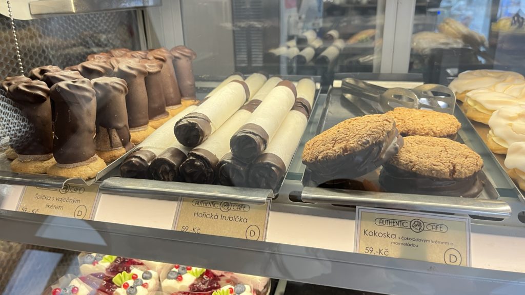 私は時間がなかったため、ここで、「Větrník(ヴェトルニーク)」 と呼ばれる、シュークリームドーナツのようなチェコ定番のお菓子をテイクアウト。丁寧に箱にまで入れてくれて、細かいところまでサービスが