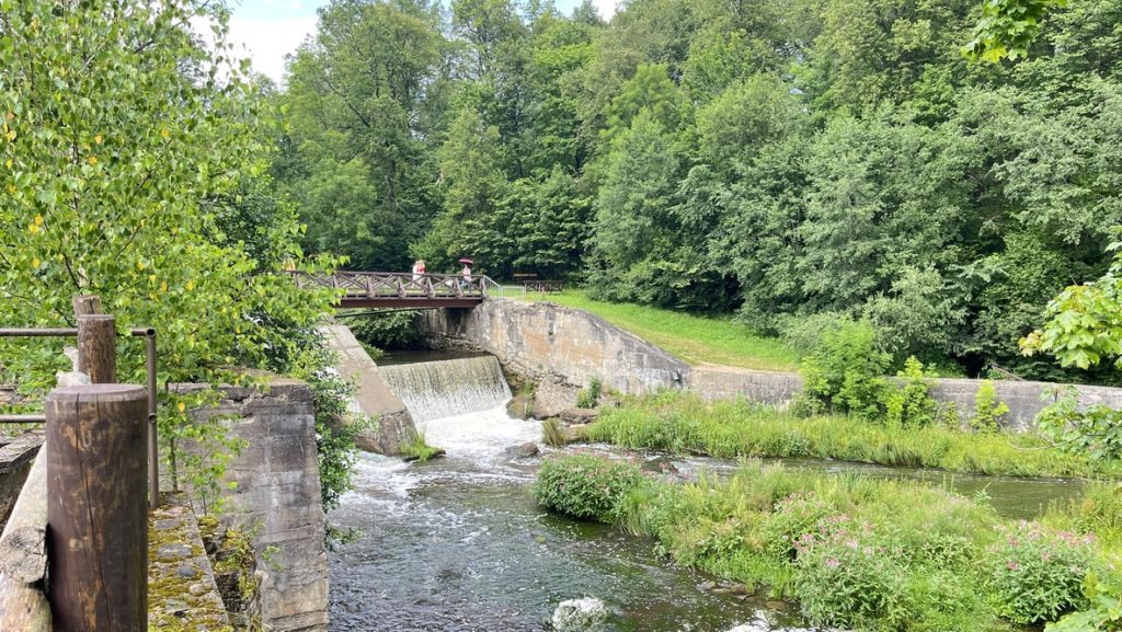 ベルモントに着いてまず目を引くのは、川沿いに広がる緑と断崖絶壁の迫力ある景色。特にプーチコライ崖の展望台からは、ヴィリニュス郊外の豊かな森と川の流れを一望でき、まるでポストカードのような眺めが広がります。