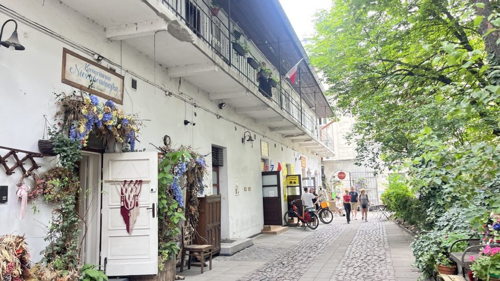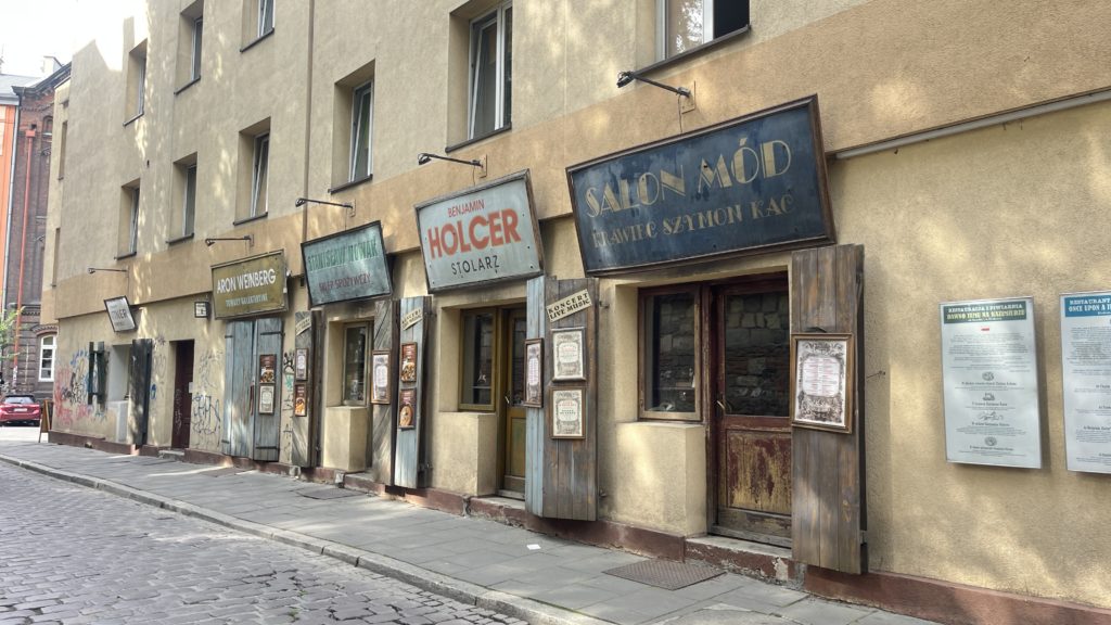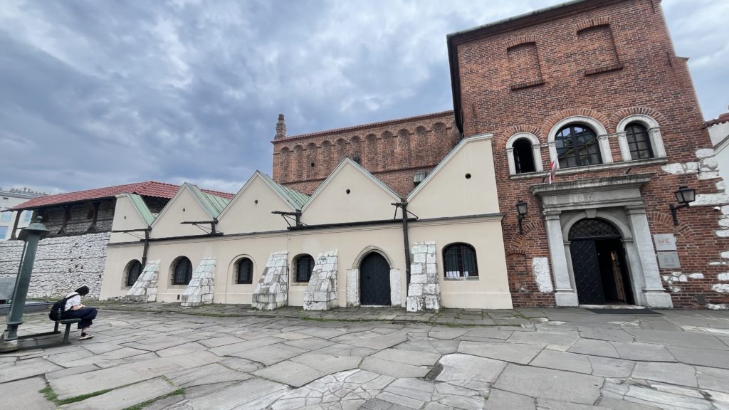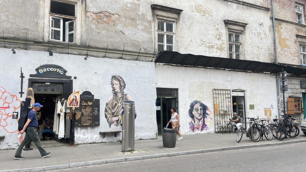 旧市街から少し足を伸ばすと、カジミエシュ地区(ユダヤ人街)に到着。中世からユダヤ人コミュニティが暮らしていた地域で、シナゴーグや古い住宅が立ち並びます。壁に描かれたストリートアートやアンティークショップ、カフェが入り混じり、独特の雰囲気を漂わせています。昼間は観光客が多く、女性のひとり歩きでも安心できる落ち着いたエリアでした。