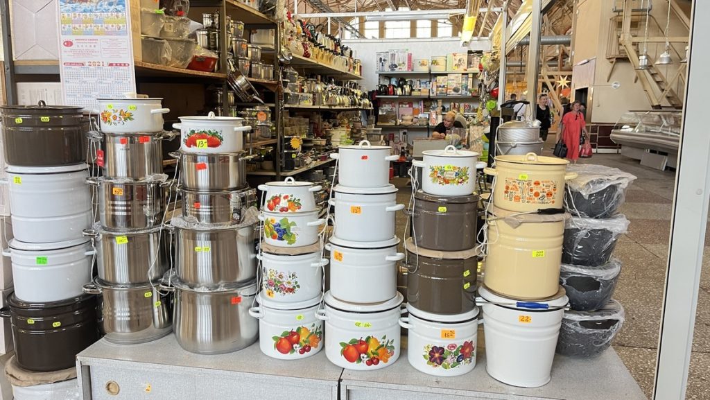 特に目を引いたのは、手編みのウールソックスやレトロなホーロー食器。ラトビア伝統のベルト「リェツェ」などカラフルな幾何学模様が美しく、ひとつひとつ模様に意味が込められているのだそうです。地元のおばあちゃんが直接販売している姿に、つい買わずにはいられませんでした。