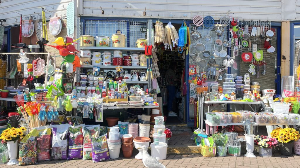実はこのお店、「Otra Elpa」という団体が運営するチャリティーショップチェーンで、売上の一部は社会活動や地域支援に充てられているのだそうです。旅行中に社会貢献につながる買い物ができるのは嬉しいポイント。おしゃれな食器やレトロな置物なども多く、インテリア好きにはたまらない空間でした。