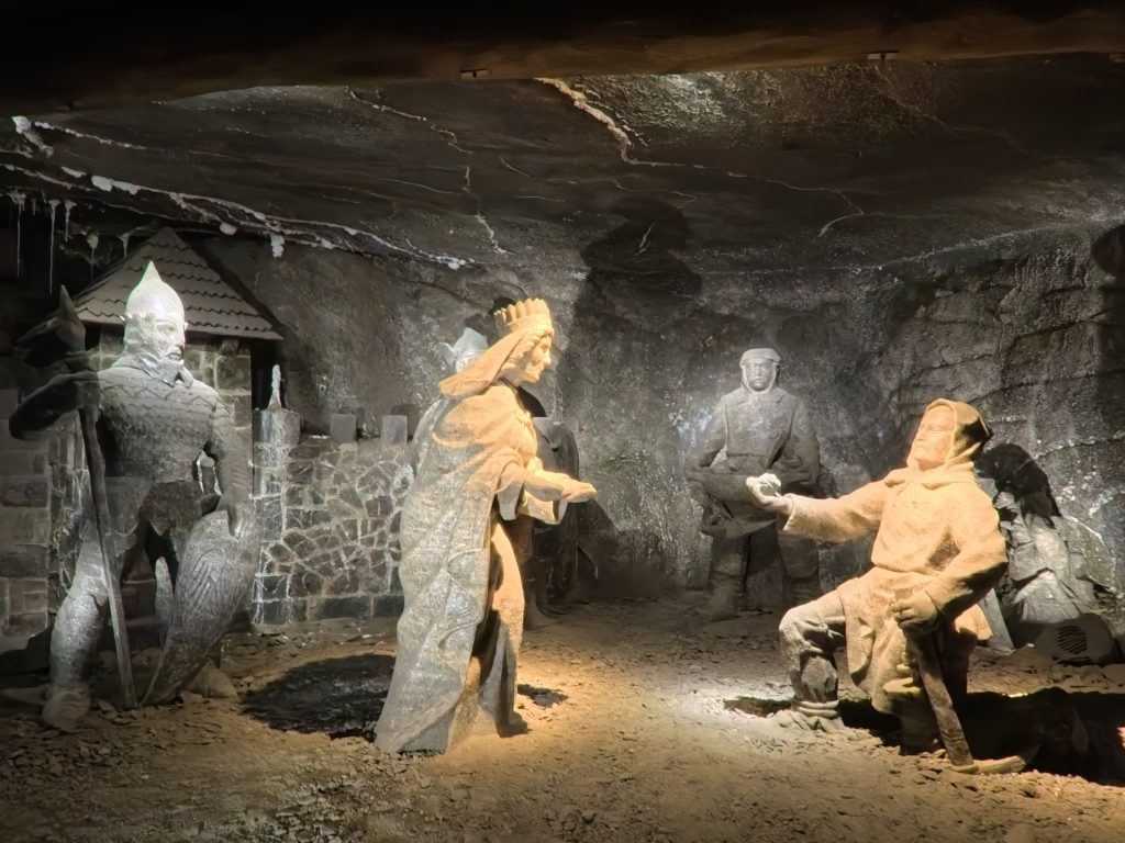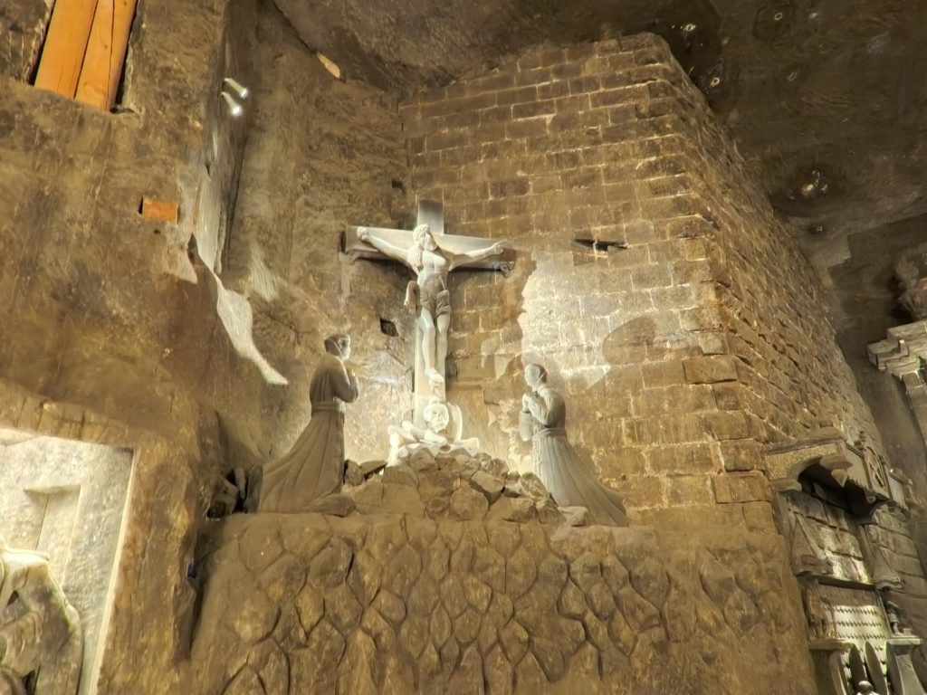 • 坑道と彫刻:鉱夫たちが残した聖人像やレリーフ。岩塩とは思えない精緻な造形美に驚かされます。