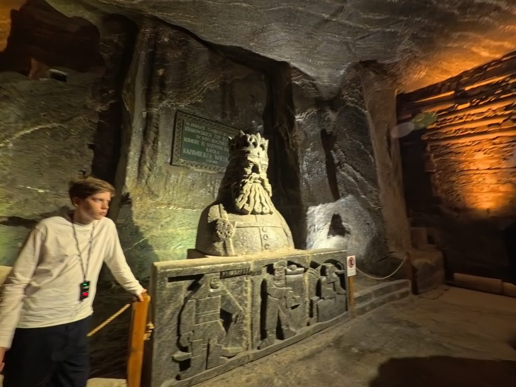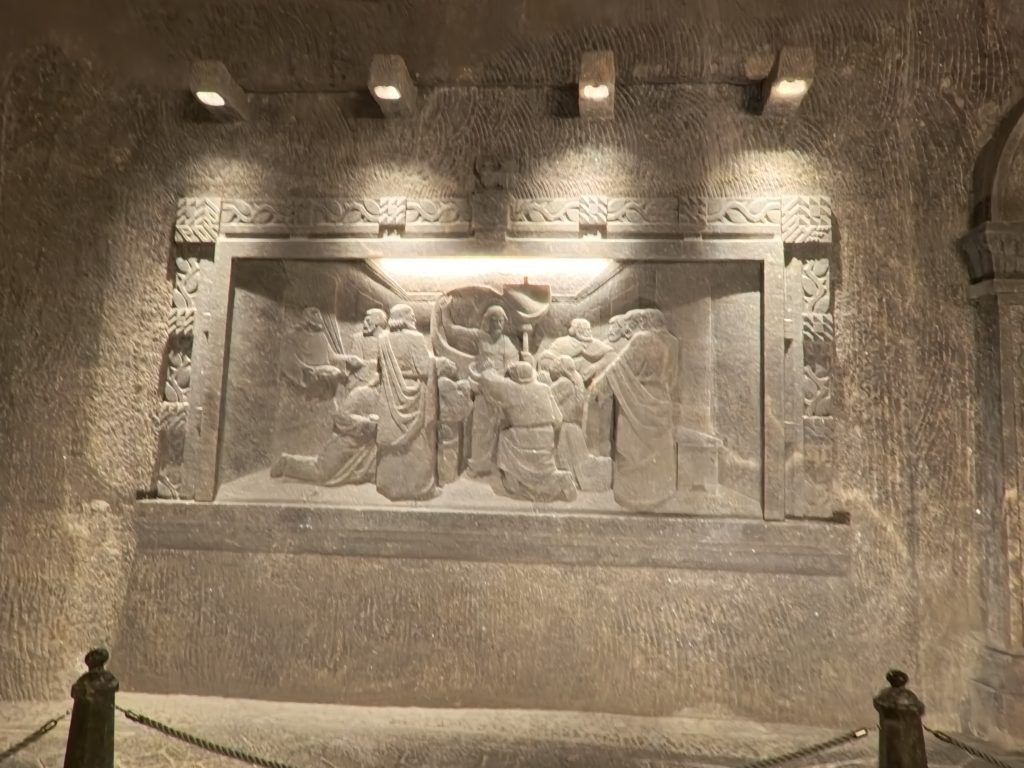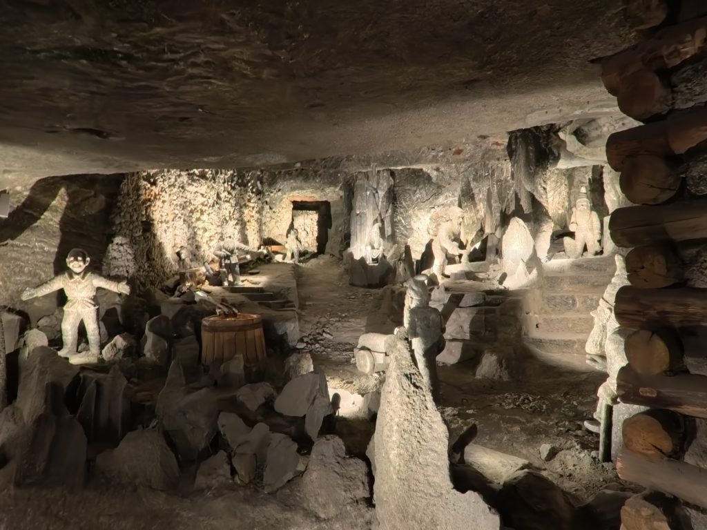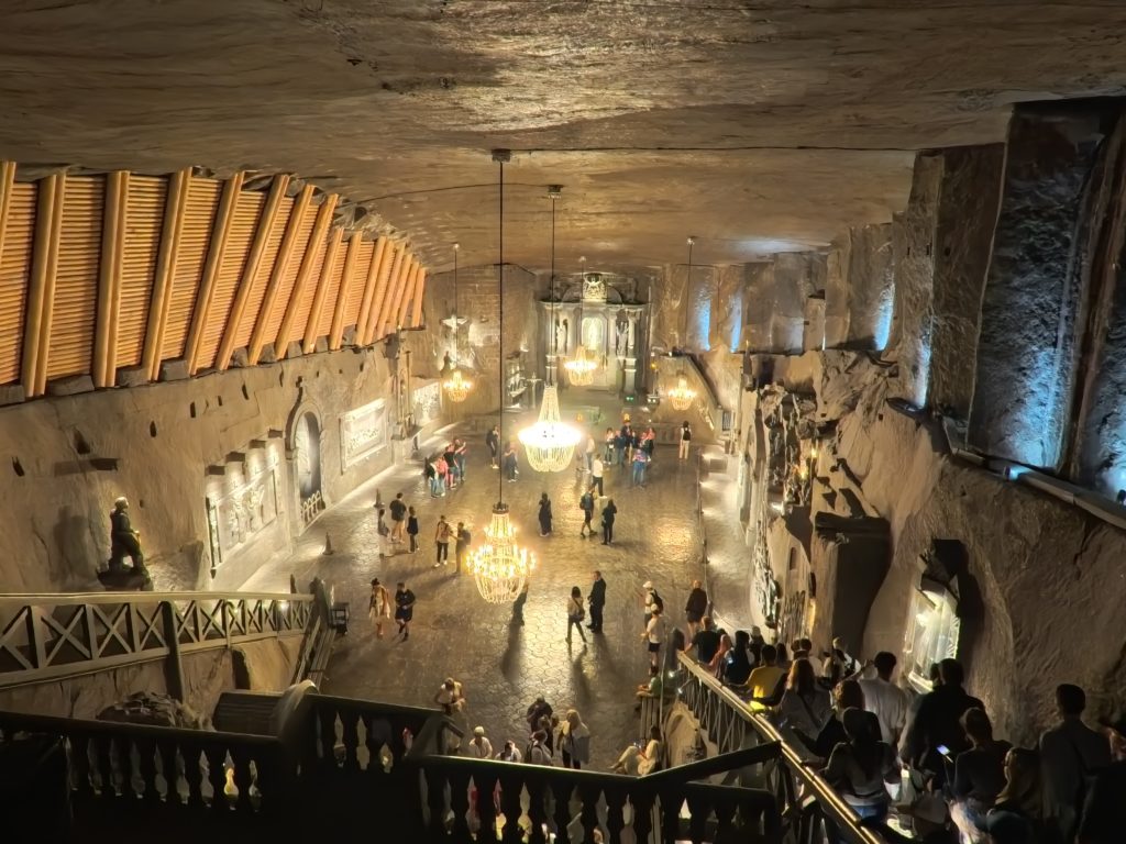 進んでいくと、ガイドさんのユーモラスな解説とともに、彫刻や礼拝堂、地下湖など次々に驚きの景色が広がります。特に聖キンガ礼拝堂に入った瞬間は息をのむ美しさで、地下とは思えないスケール感。シャンデリアが塩でできていると知ったときは本当に驚きました。