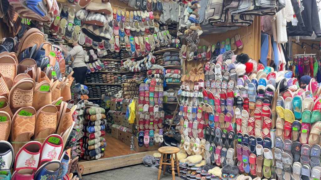 グバウフカ山へいくケーブルカー乗り場の近くには市場があり、毛皮の帽子やセーター、民芸品、チーズのオスチペックなどが並び、観光客でにぎわっていました。市場の雰囲気は山岳リゾートらしく、見ているだけでも楽しい時間。