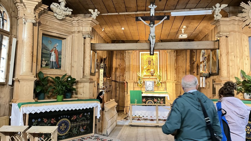 街の中には歴史ある木造の教会が点在。代表的なのは「聖母マリアの教会(Kościół Matki Boskiej Częstochowskiej)」。シンプルながらも温かみのある建物は、この地の人々の信仰と暮らしを物語っています。木の香りが残る内部で静かに祈りを捧げる人々の姿が印象的でした。