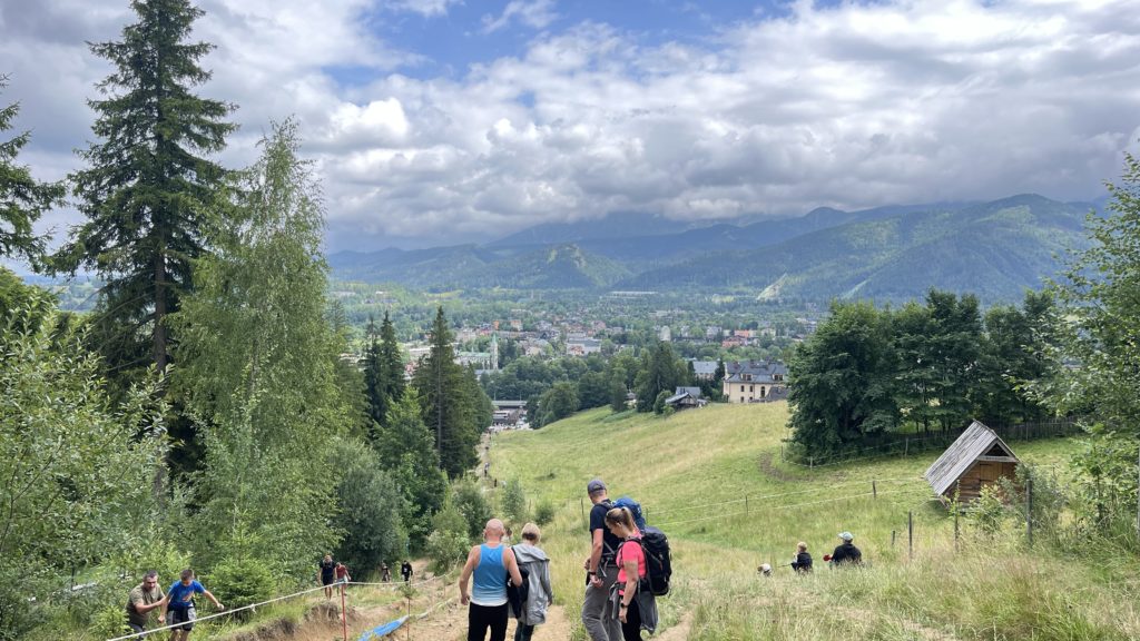 山頂に到着すると、目の前に広がるのはタトラ山脈とザコパネの街並みを一望する大パノラマ。晴れた日には遠くの稜線までくっきり見渡せ、夕暮れ時には街に灯る光がとても美しく印象的です。山頂にはレストランやカフェもあり、絶景を眺めながらのんびり過ごすのも贅沢なひととき。冬はスキーやソリ遊びも楽しめ、夏は緑の草原と涼しい空気が心地よい場所です。