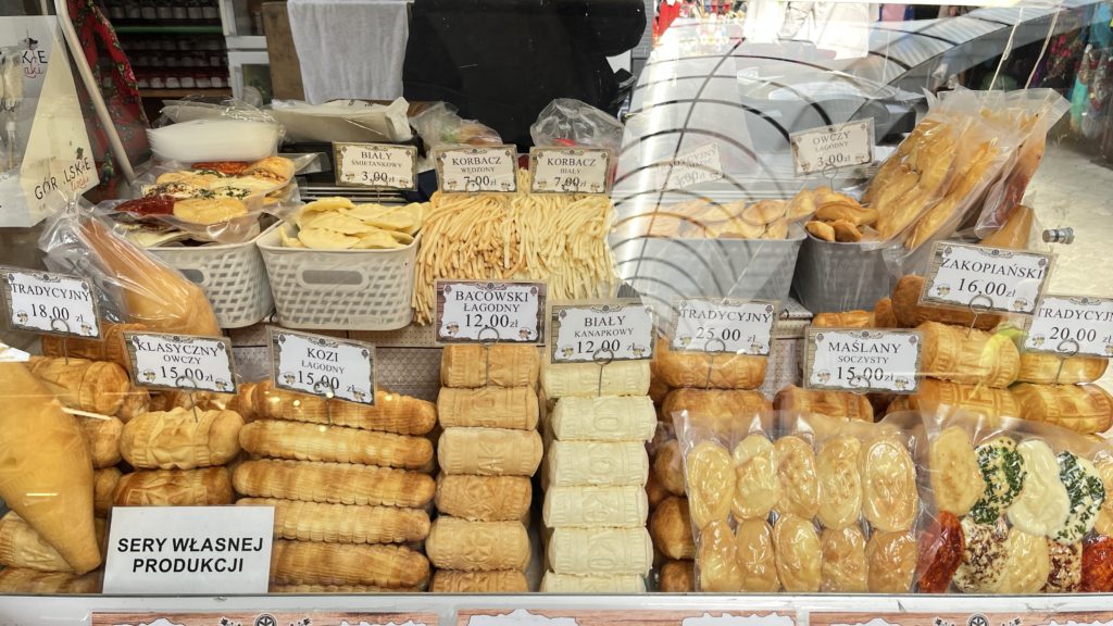 乗り場周辺には観光客で賑わう市場があり、山岳民芸品や毛皮製品、チーズ(オシペック)やハチミツなどの名産品がずらり。ちょっとしたお土産探しにもぴったりです。ザコパネらしい素朴な雰囲気を感じられるので、ケーブルカーと合わせて立ち寄りたいスポットでした。