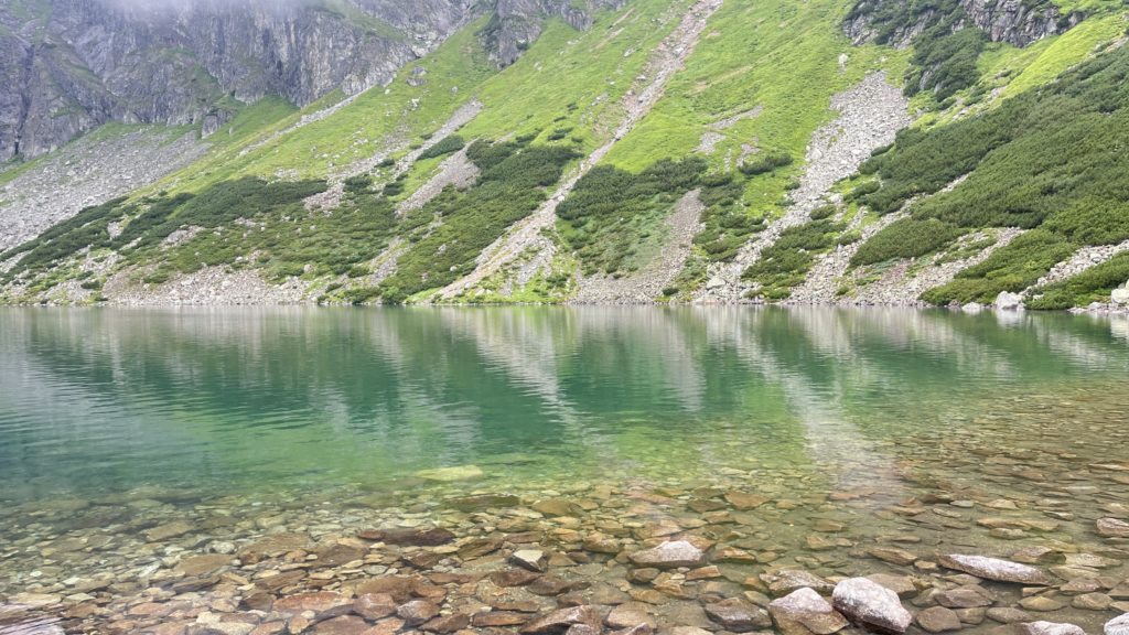 1時間くらい下ったところに、途中、往復1時間ほどで立ち寄れる「Czarny Staw Gąsienicowy」という湖へ。