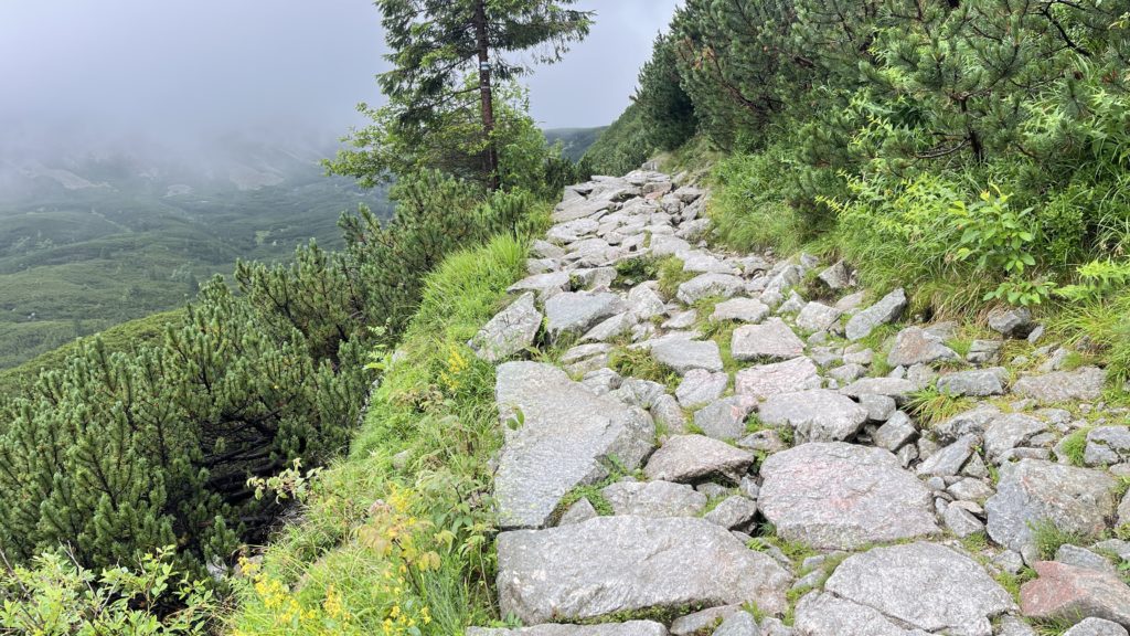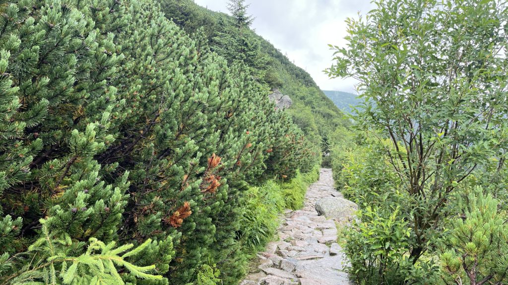 下山の道も初心者でも安心して下れるルート。特に危険な場所もないですが、雨が降ったあとは滑りやすいので注意です。途中、タトラ国立公園の山々の絶景スポットが何箇所かあり、景色楽し見ながら下山。高山植物や日本では見たことのない、ヨーロッパ特有の植物も生えているのを発見できます。